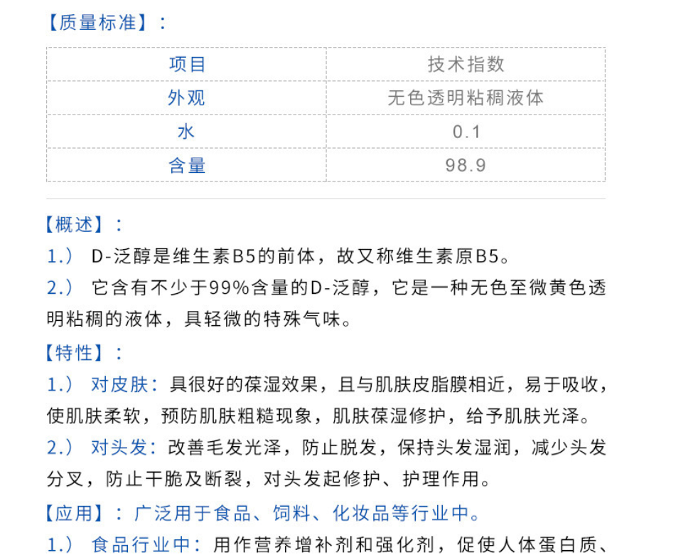 欣隆达D泛醇 维生素B5保湿剂护理头发植萃达D-泛醇