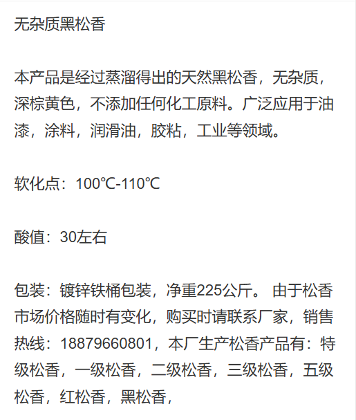 供应油漆用黑松 香 再生胶用 橡胶用黑松香 8050-09-7